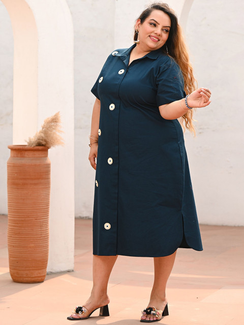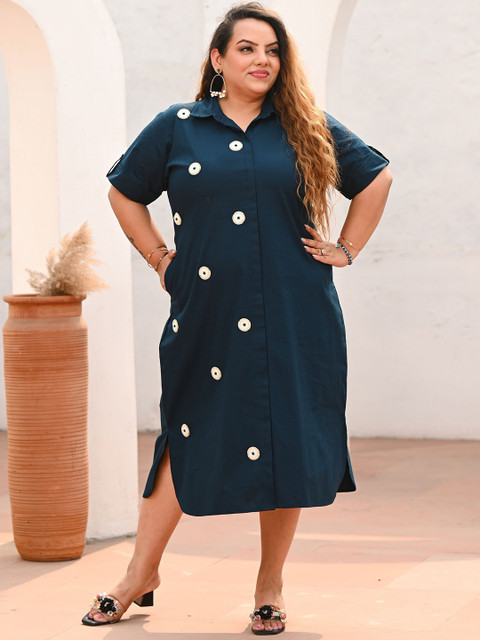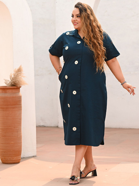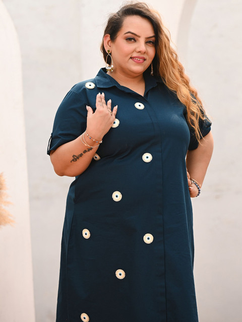 - Teal evil eye printed a-line dress