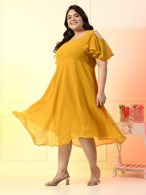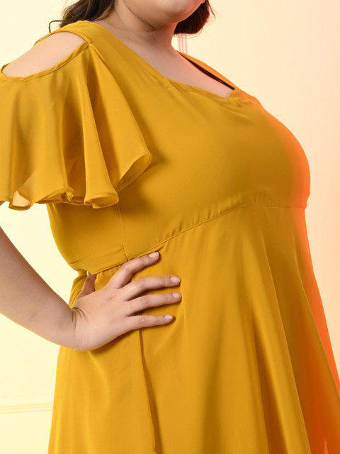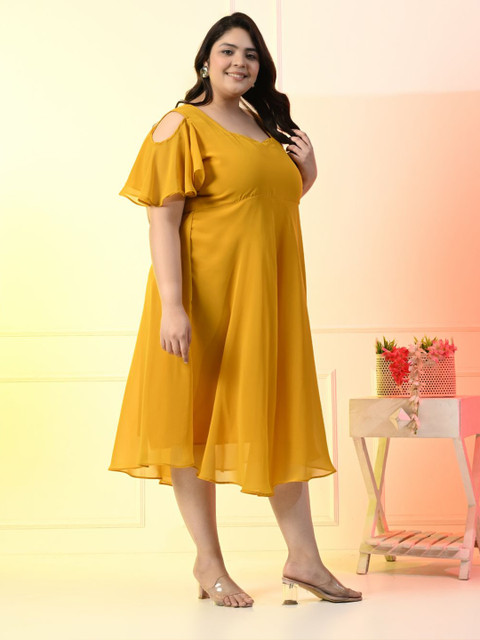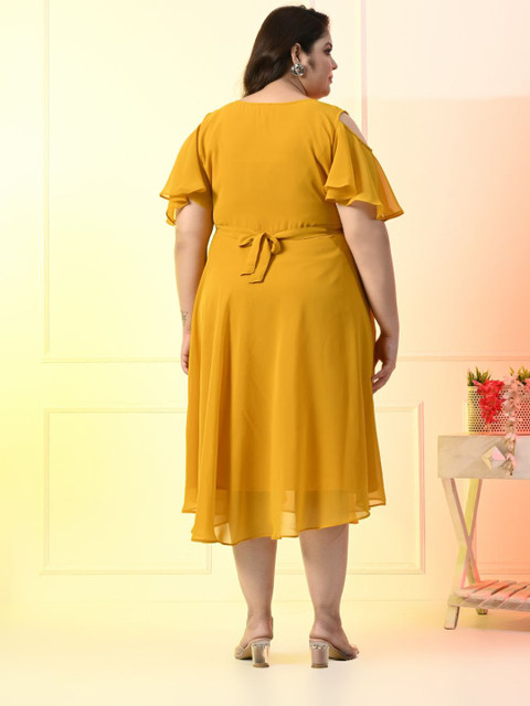- Mustard yellow solid fit & flare dress