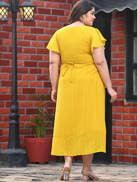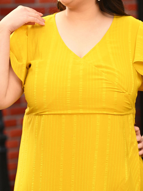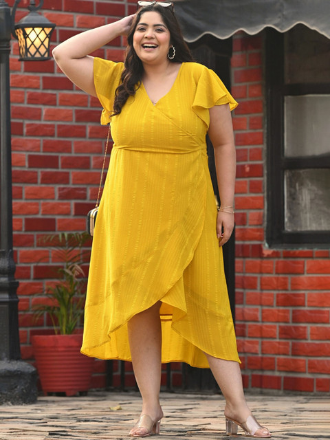 3 reviews for PrettyPlus by Desinoor.com Women Plus Size Yellow Wrap Georgette Dress