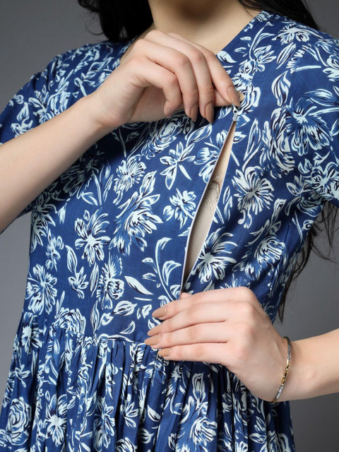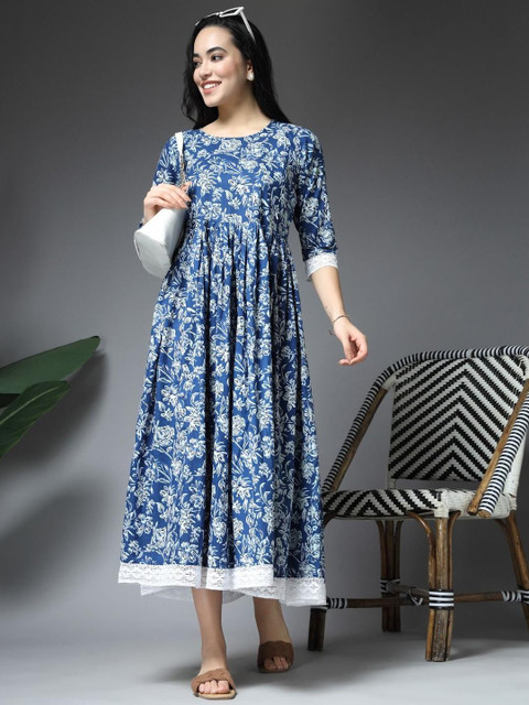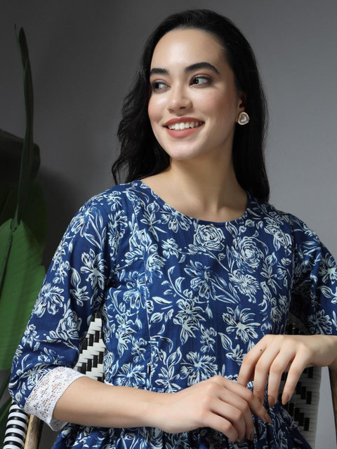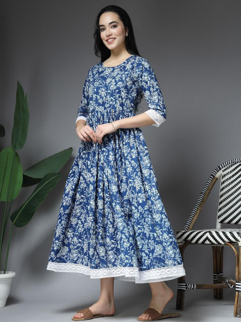 The floral printed blue frock is really beautiful. The fabric is soft and comfortable, and the fitting is perfect. Ideal for daily wear and casual outings.