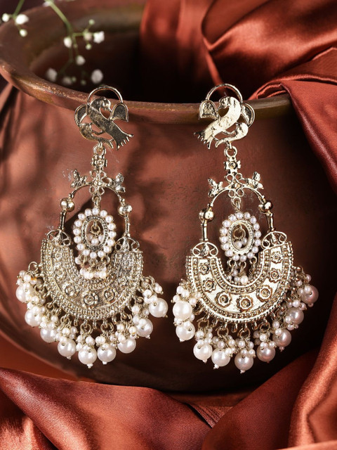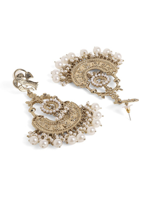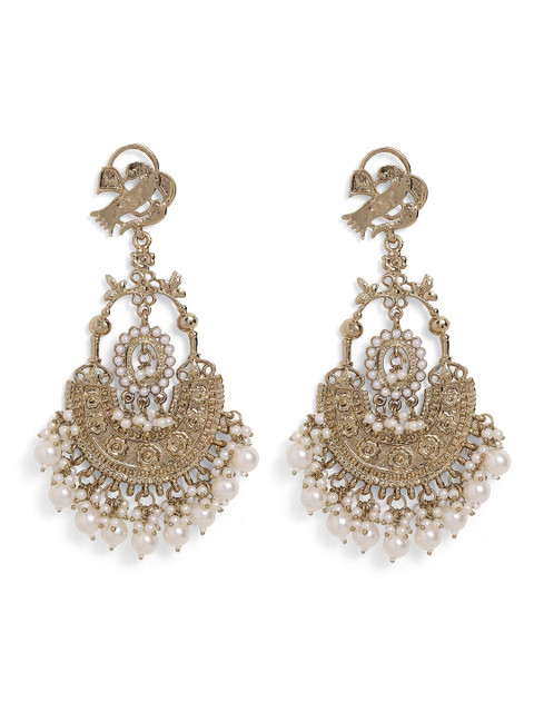Gold-Plated & white contemporary chandbalis earrings, gold-plated,has artificial beads studded