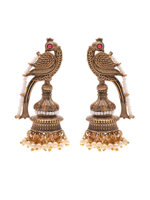 Priyaasi Gold-Plated Beads Beaded Peacock Shaped Jhumkas