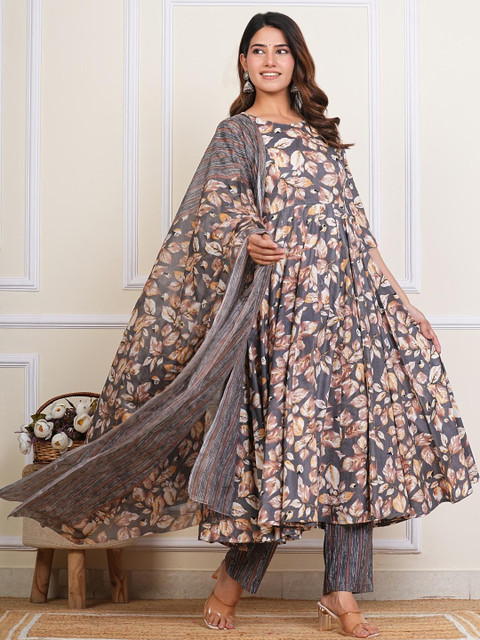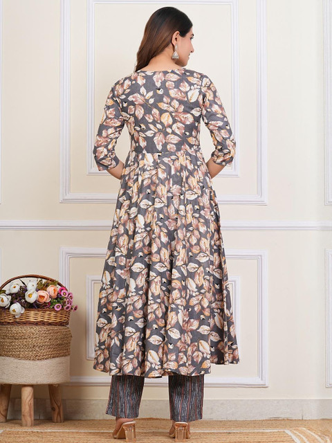 Upgrade your ethnic wardrobe with this beautiful Procini Womens Cotton Anarkali Kurta Set with Dupatta. Made from soft breathable cotton fabric, this floral printed kurta set offers a perfect blend of comfort and elegance. The calf-length Anarkali kurta features stylish 3/4th sleeves and a round neck, paired with matching striped cotton pants and a graceful printed dupatta.Ideal for festivals, casual outings, daily office wear, and traditional functions, this outfit gives you a graceful desi look. The light, airy cotton ensures all-day comfort in every season.