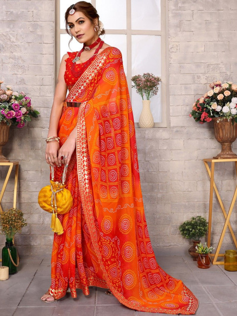 Fabric quality is nice. Colour is also perfect. Bandhani print is perfect.easy to wear. Border also looks nice.