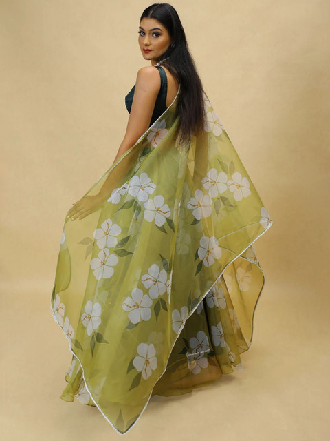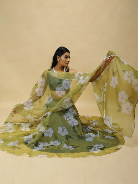 Green and white Floral printed choli with dupatta,