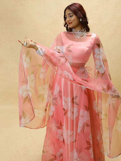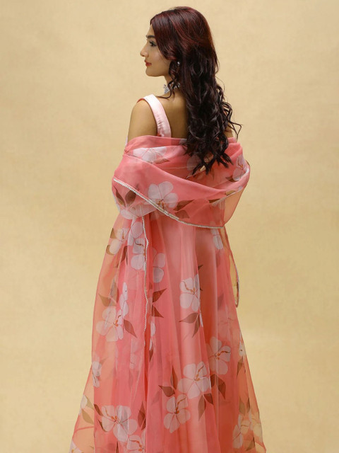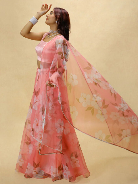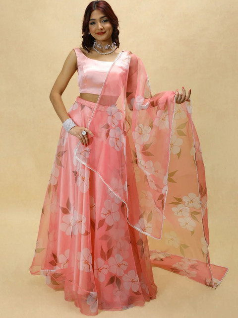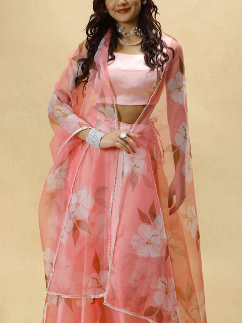 PURI MAA Floral Printed Semi-Stitched Organza Lehenga & Blouse With Dupatta