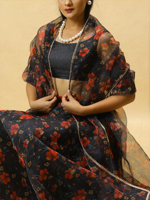 Black and red printed dupatta, taping border