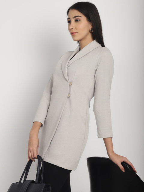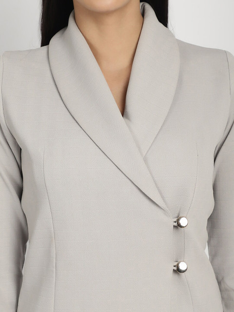 Grey solid regular-fit blazer, has a shawl collar, long sleeves, single-breasted with double button closure, and a single-vented back hem