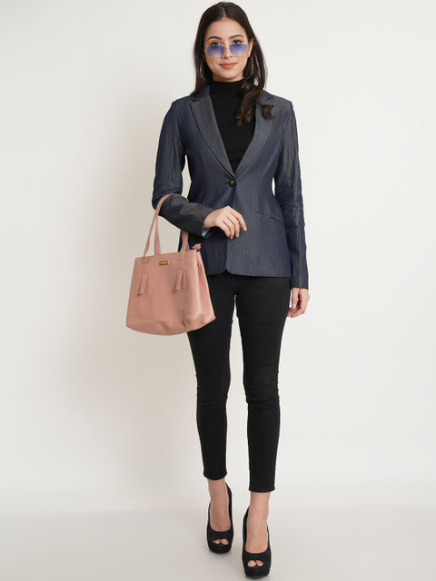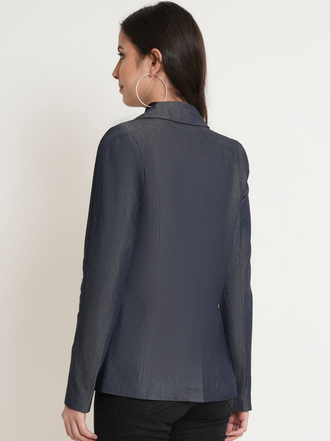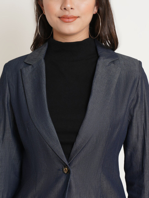 Light Blue solid slim-fit single-breasted formal blazer, has notched lapel collar, long sleeves, 2 pockets, double button closure and straight hem and attached lining
