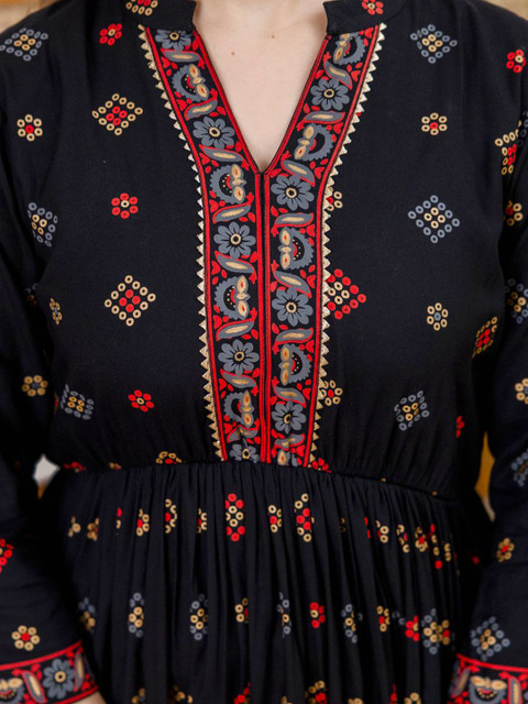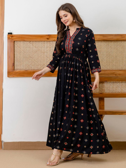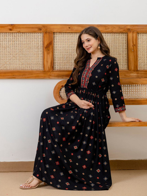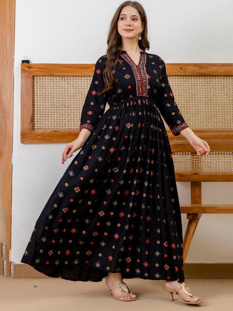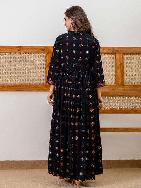 PURSHOTTAM WALA Floral Printed Mandarin Collar Maxi Ethnic Dress