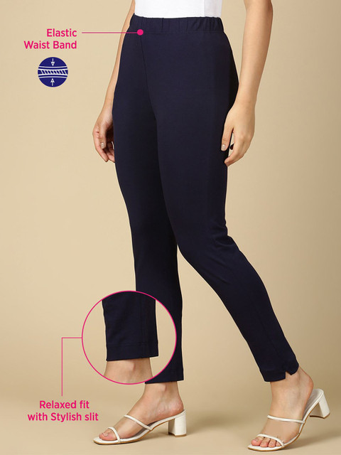Navy Blue solid ankle-length leggings, has an elasticated waistband with slip-on closure