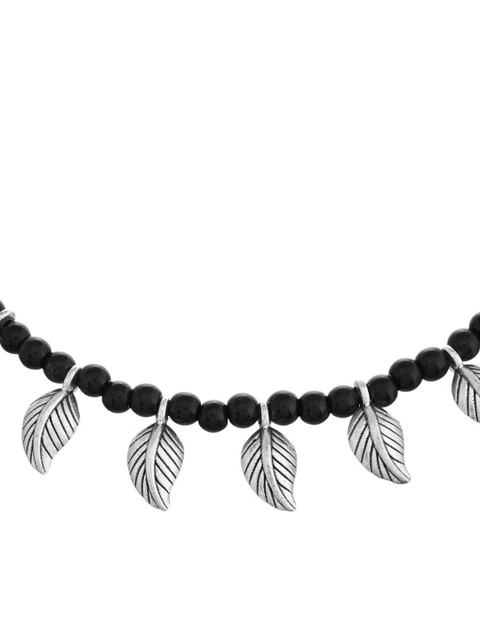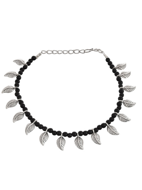 Silver-toned and black oxidised german silver anklets, has artificial beaded details