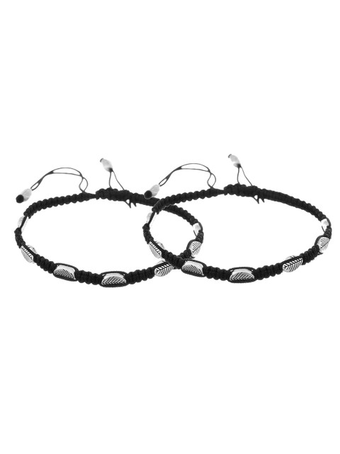 PYR FASHION Set of 2 Embellished German Silver-Plated Oxidised Anklets