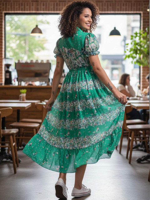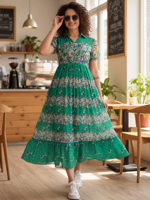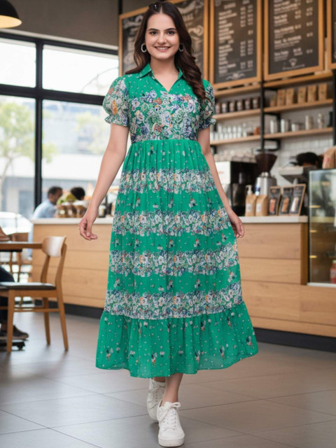 - Green and Green Floral Print A-Line dresses