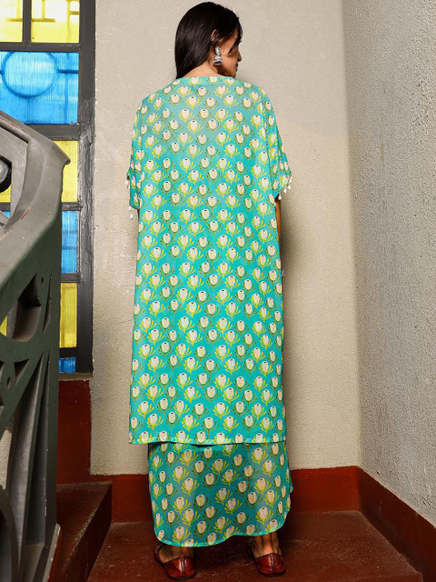 Green floral printed skirt, has a partially elasticated waistband with a slip-on closure