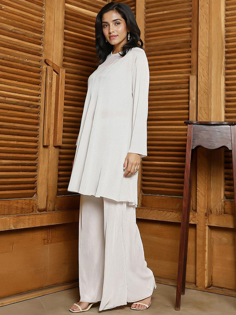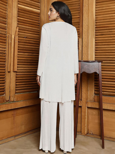 White solid co-ords consists of a tunic and palazzos