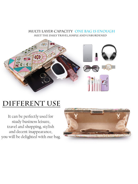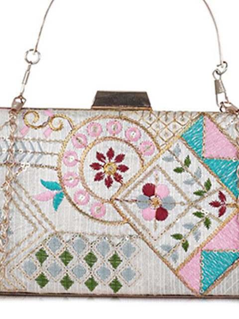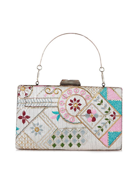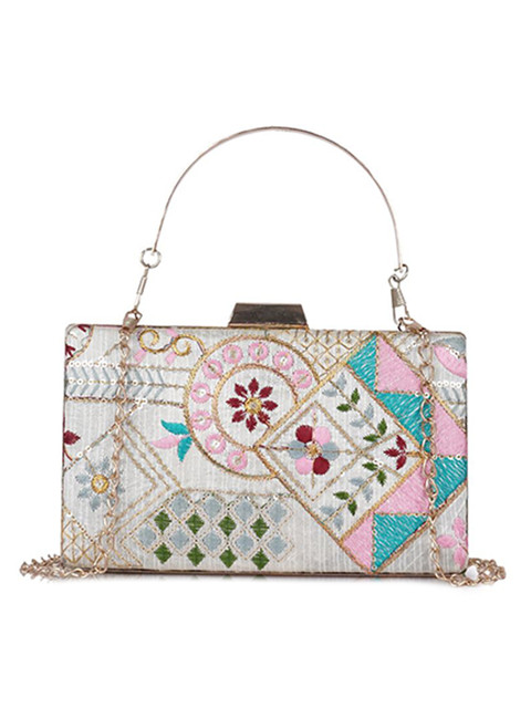 Blue, white and pink embellished box clutch