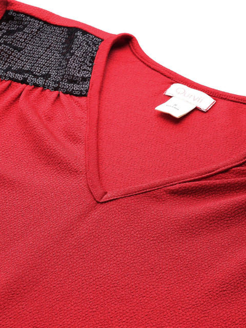 - Red and black embellished bodycon dress