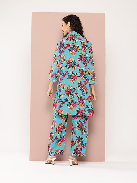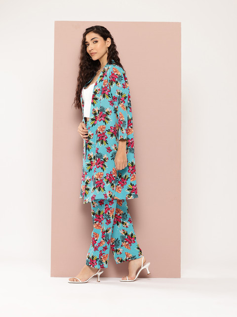 Qurvii Floral Printed Coat With Trousers