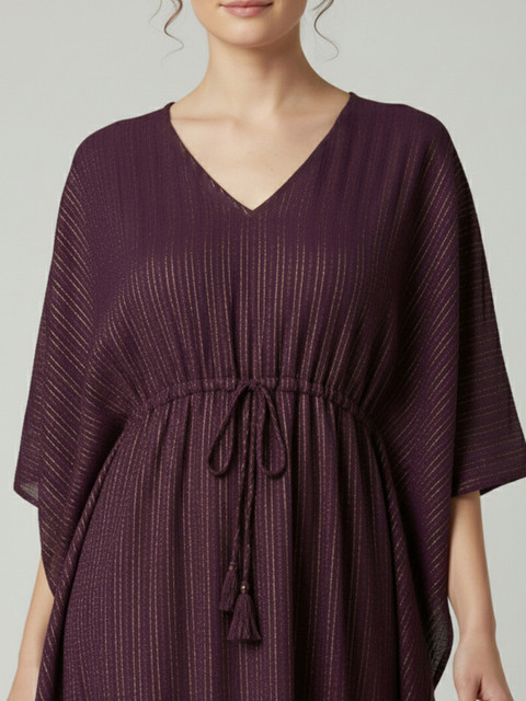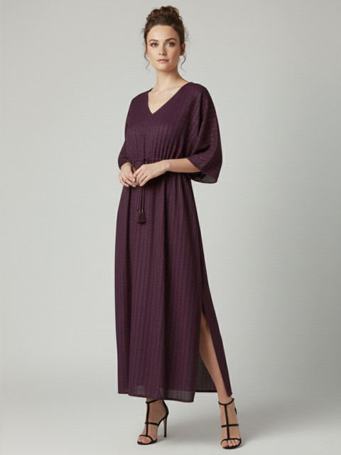 - Purple and purple self design kaftan dress