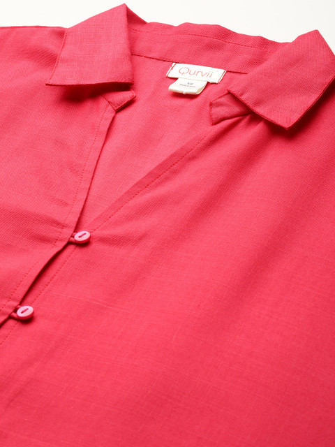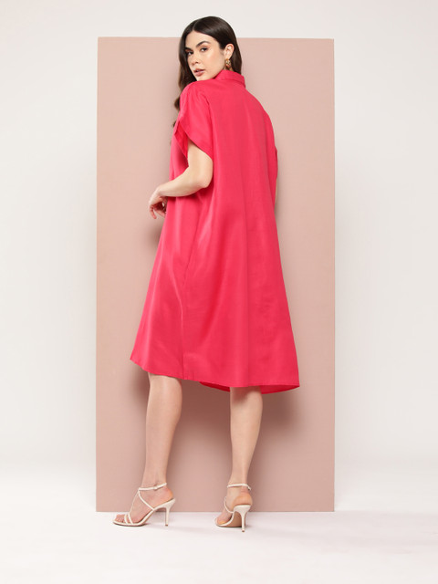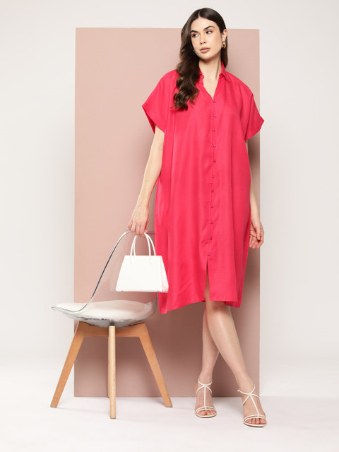 - Pink solid shirt dress