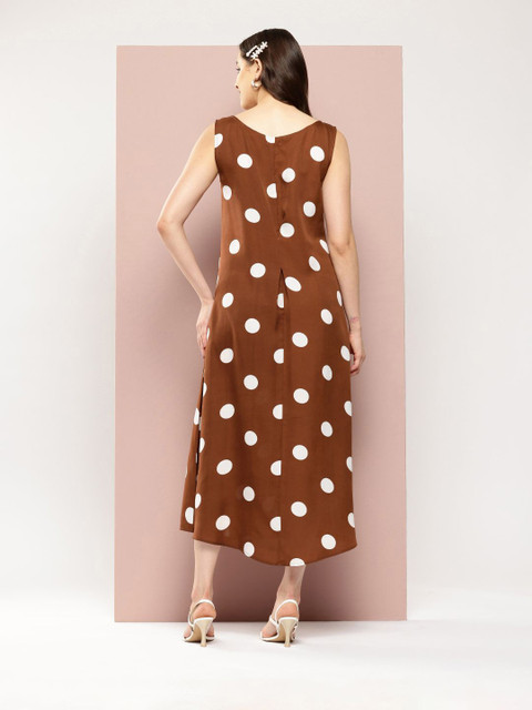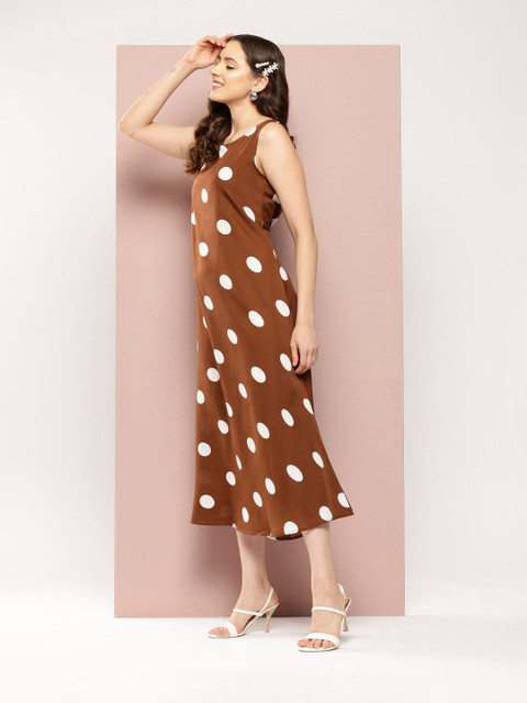 Qurvii Polka Dot Print Shoulder Straps A-Line Midi Dress