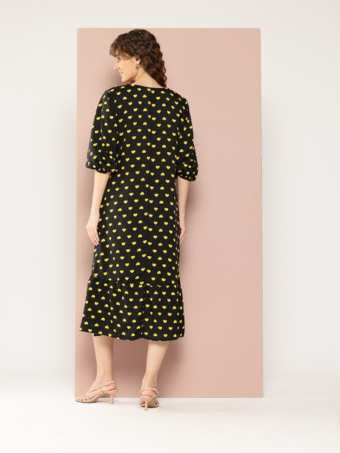 1 review for Qurvii Print Puff Sleeves Crepe A-Line Midi Dress