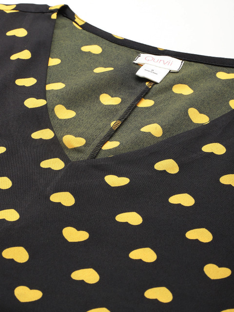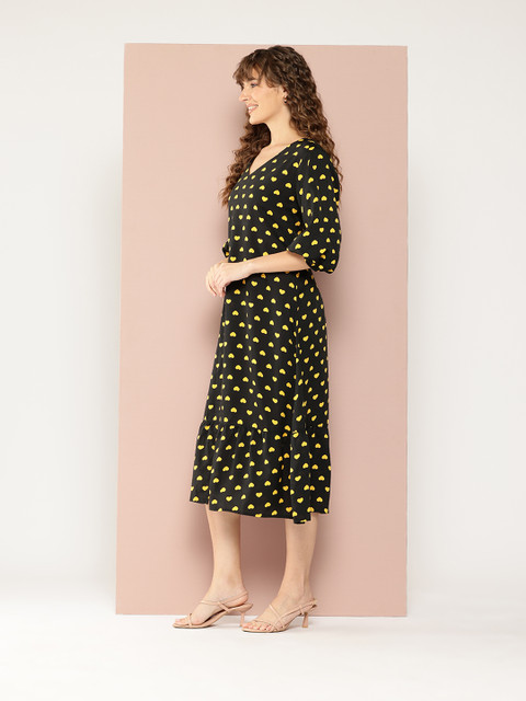 • Black and yellow conversational print a-line dress