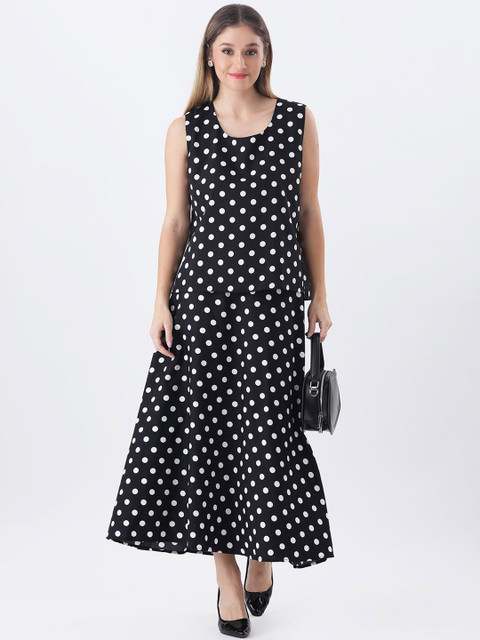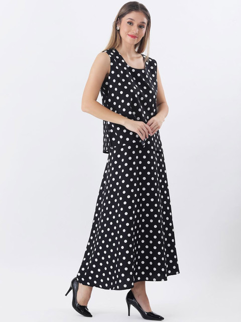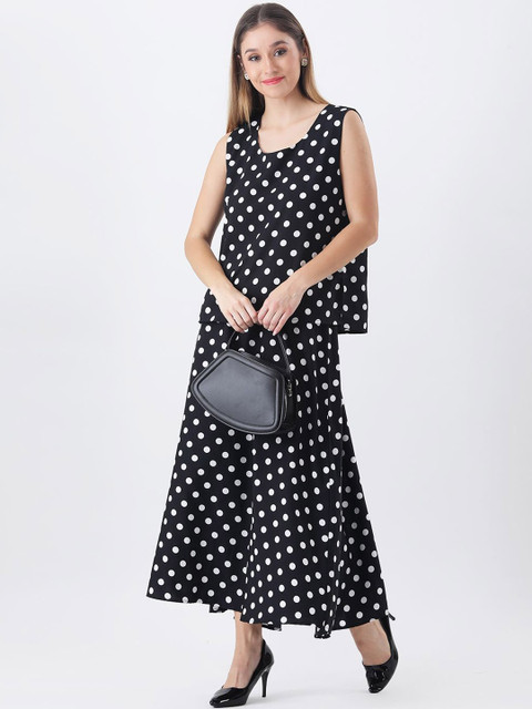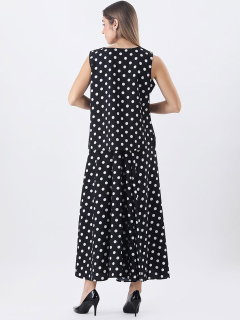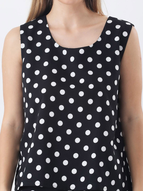 Black and white printed top, has a round neck and sleeveless, secured with slip-on closure