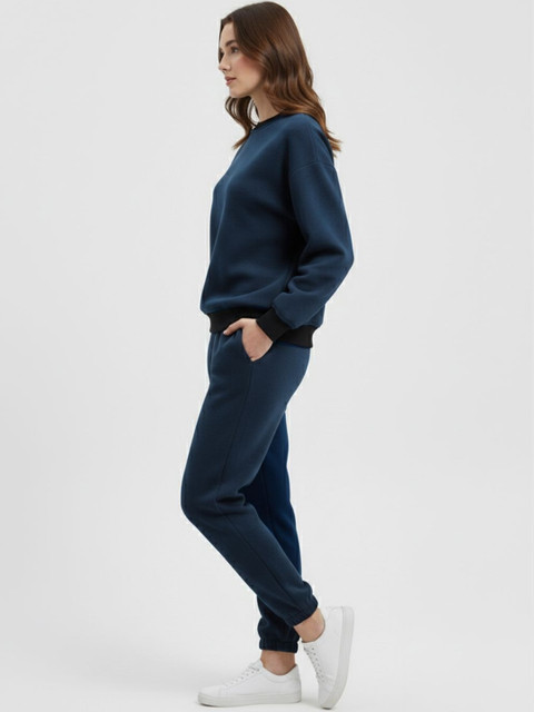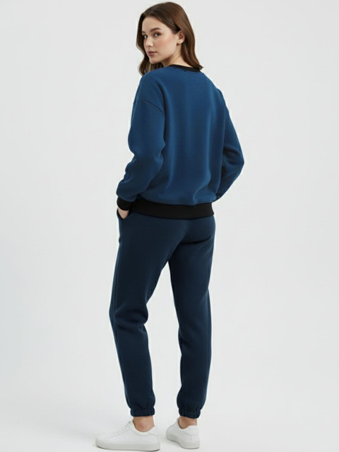 Teal-blue solid sweatshirt , has a round neck and long sleeves