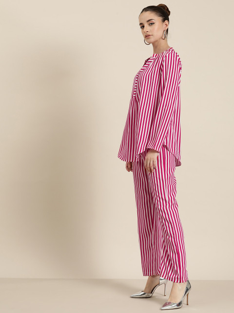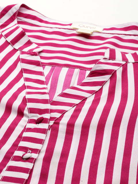 - Magenta and white striped regular top