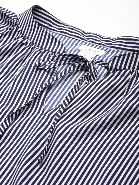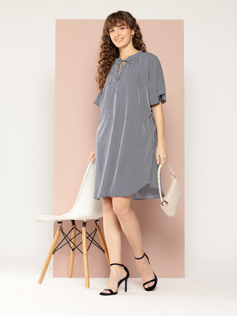 Be the first to review “Qurvii Striped Tie-Up Neck Flared Sleeve Crepe A-Line Dress”