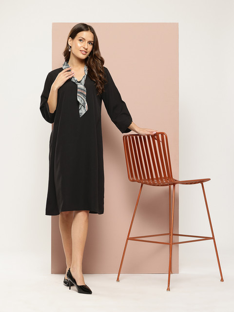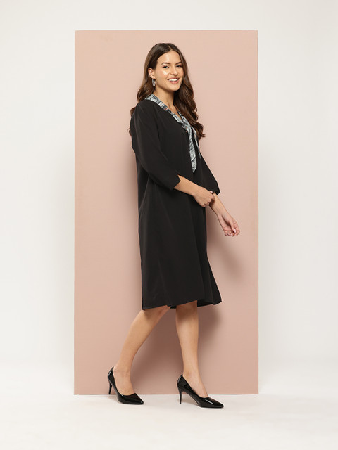 - Black and grey solid a-line dress