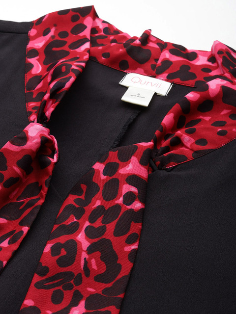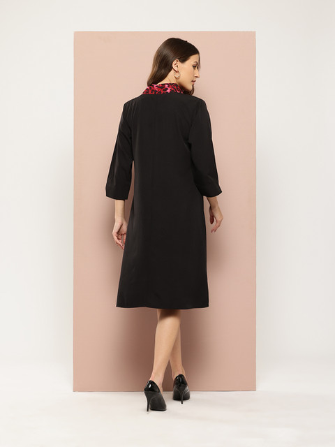 • Black and pink solid a-line dress