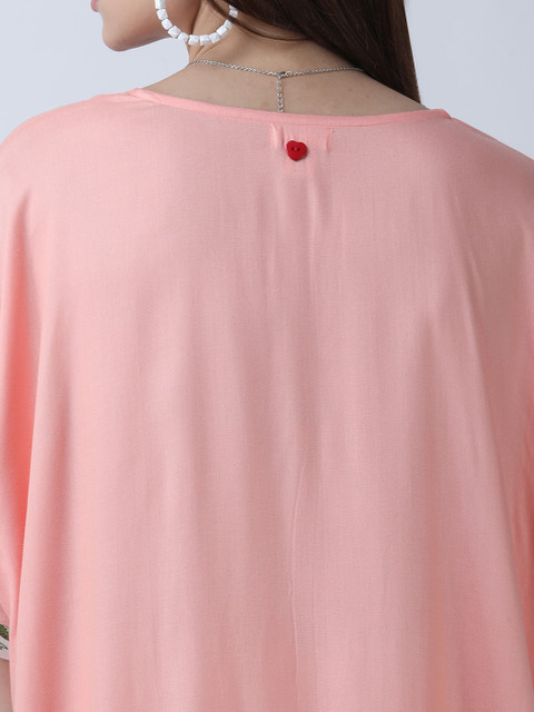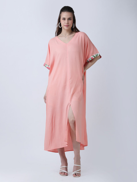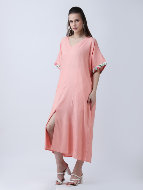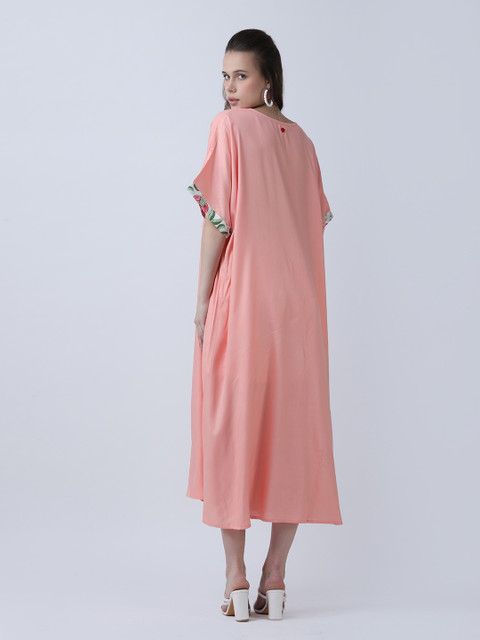• Peach-coloured solid a-line dress