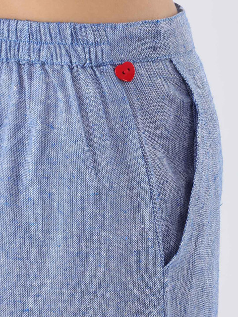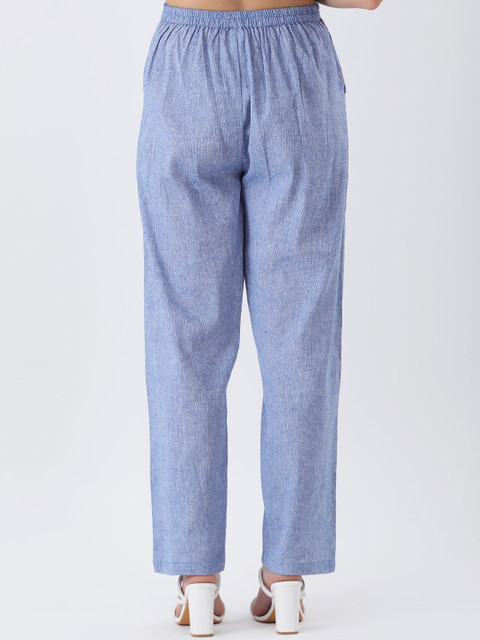 Blue solid trouser, has an elasticated waistband with slip on closure has one pockets