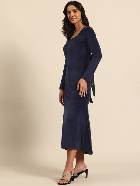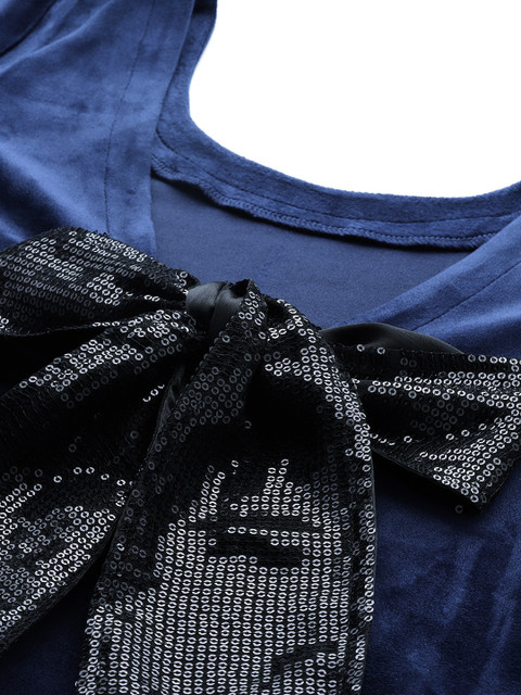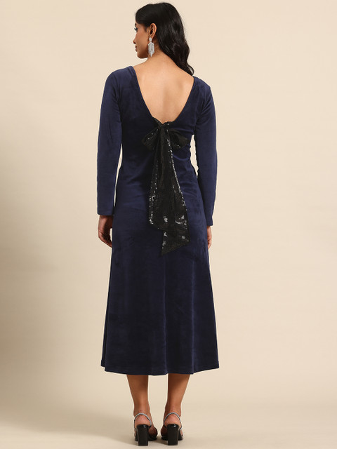 - Navy blue and black solid embellished a-line dress