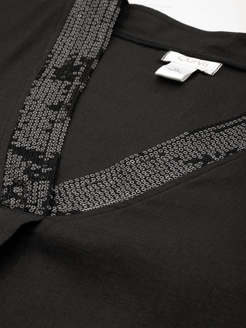 Black embellished top, has a v-neck, long sleeves