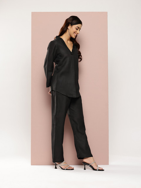 Qurvii Women Embellished Top & Trousers Co-Ords Set