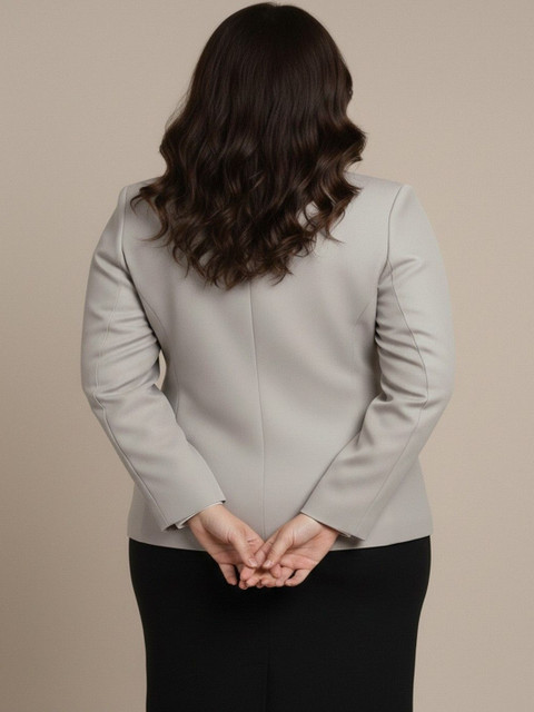 Grey solid regular-fit casual blazer, has a notched lapel, long sleeves, single-breasted with double button closure, two flap pockets and a ventless back hem