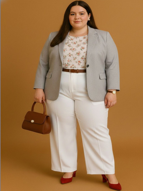 Grey solid regular-fit casual blazer, has a notched lapel, long sleeves, single-breasted with double button closure, two flap pockets and a ventless back hem