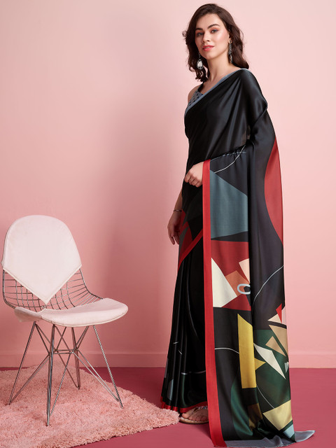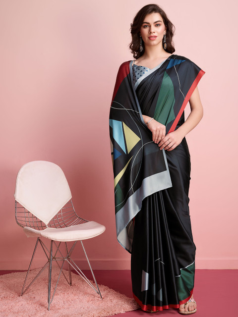 - Geometric printed saree with no border