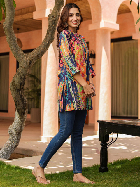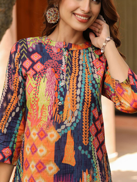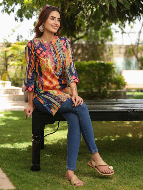 - Orange and blue & pink straight kurti