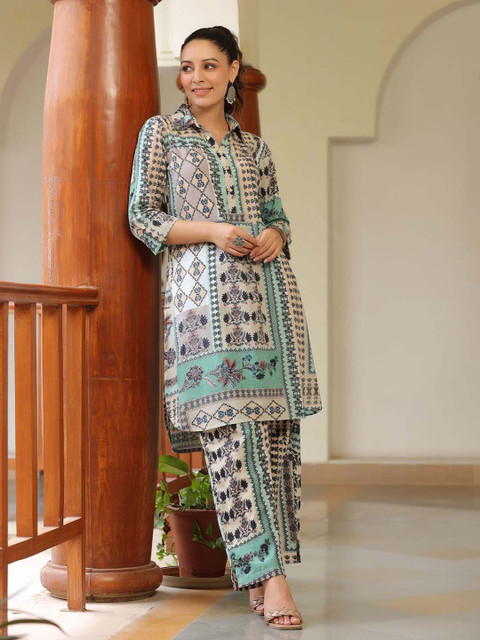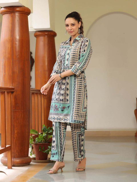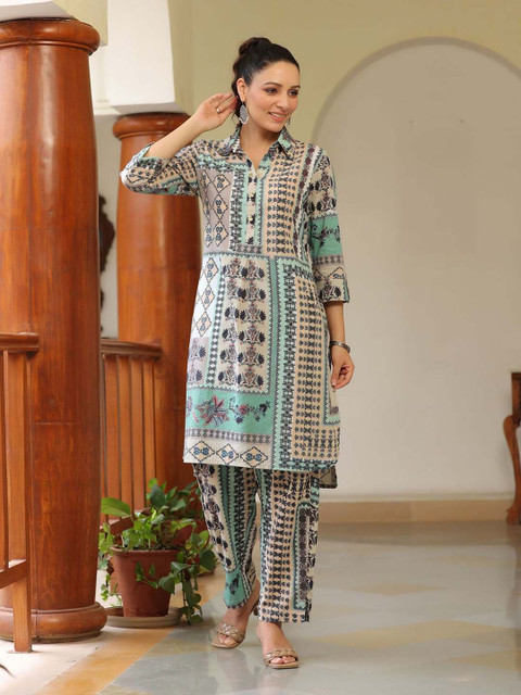 Rain & Rainbow Ethnic Motifs Printed Pure Cotton Tunic With Tourers Co-Ords