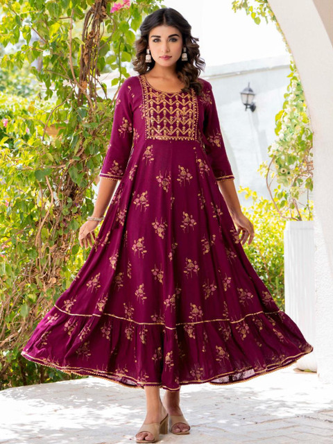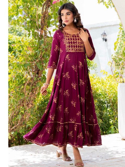 RAINDROP brings to you Printed anarkali Kurti which is made from Rayon fabric . This Rayon Kurta has been designed keeping in mind the latest trends in contemporary casual fashion. The Kurti dress combines ethnic with the fashion of today and makes you stand out among others when you adorn it. RAINDROP prints has a characteristic of an apparent “blurriness” to the design. The blurriness is a result of the extreme difficulty the weaver has lining up the dyed yarns so that the pattern comes out perfectly in the finished cloth. The blurriness can be reduced by using finer yarns or by the skill of the craftsperson. Ikats with little blurriness, multiple colours and complicated patterns are more difficult to create and therefore often more expensive.