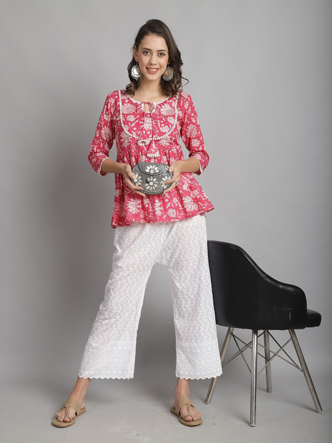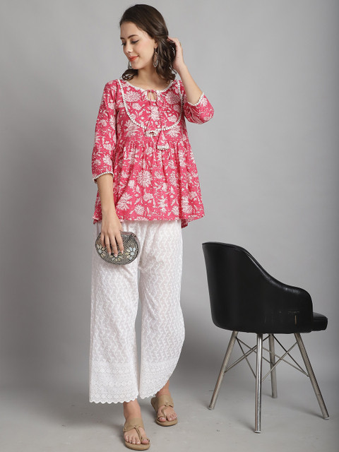 - Tie-up neck, three-quarter, regular sleeves sleeves