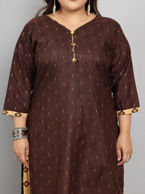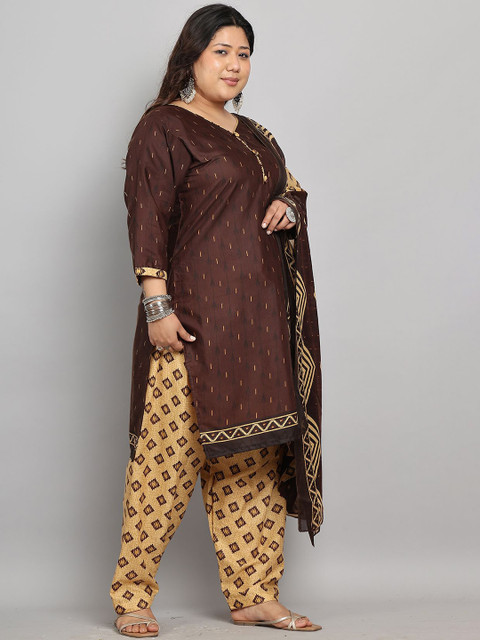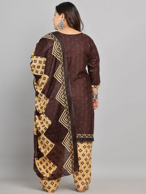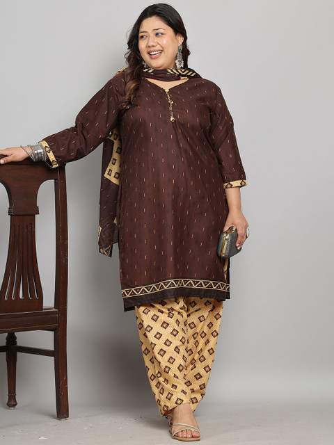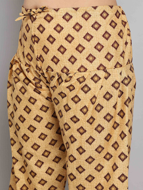 Brown and beige geometric printed kurta with salwar & dupatta