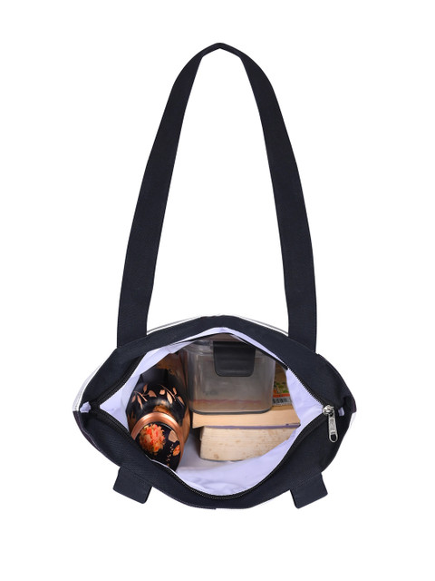 Tote Bag is made up of Poly canvas material with inside lining and a handle (without rivets) in contrast to artwork, has 1 main compartment (no external pockets) and each unit has a high-quality zipper with metal puller.
