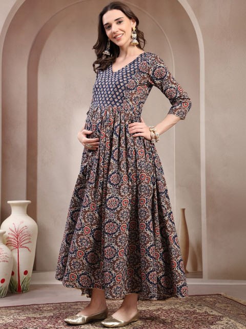 RANGEELO JAIPUR Women Ethnic Motifs Printed Maternity Anarkali Kurta