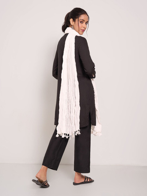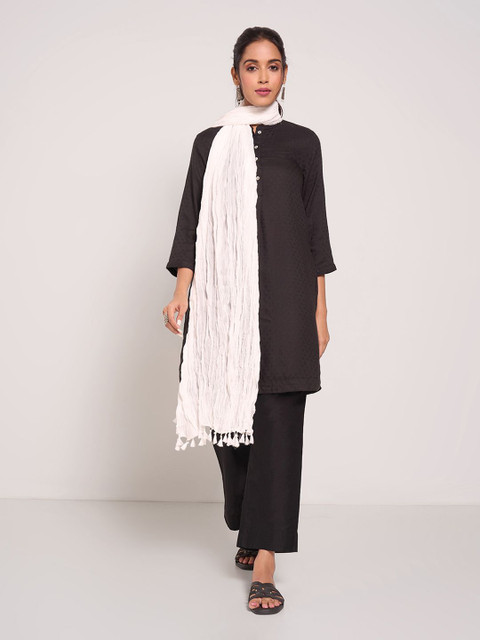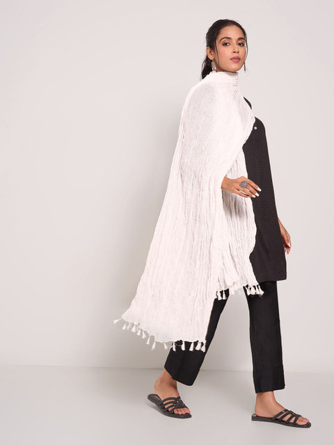 White solid dupatta, tasselled border